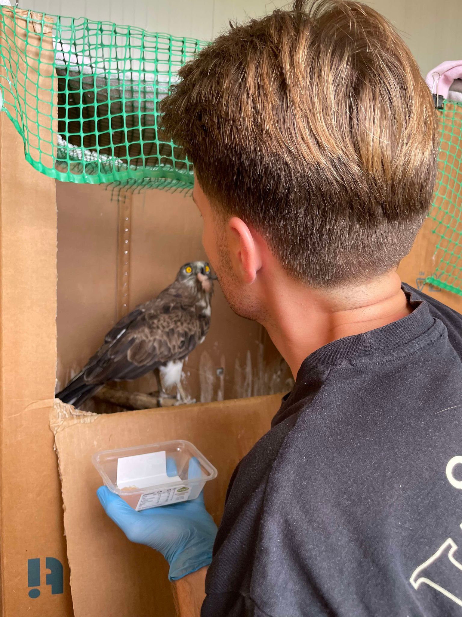 Nos missions sont assez variées, nous devons préparer la nourriture des animaux, en coupant du poulet et du poisson, des fruits et des légumes, nettoyer les enclos, les mangeoires et les cages, nourrir tous les animaux présents, assister les vétérinaires lors des soins et garder l’endroit propre. La majorité des animaux présents sont des volatiles, dont beaucoup de rapaces comme des faucons, des chouettes et hiboux, des buses, des aigles, à qui il faut préparer la portion de nourriture indiqué sous une forme qui leur est spécifique, comme des boulettes de poulet smashé pour les faucons ou des cuisses de poulet pour les aigles. Il y a aussi des tortues pour qui nous préparons des portions de fruits et légumes, des hérissons qui mangent des croquettes avec des morceaux de blanc de poulet. Les journées passent très vite, on ne voit clairement pas le temps passer. Les plannings sont donnés en début de semaine et on arrive à s’arranger entre nous pour répartir le travail et ainsi être le plus efficace possible. Les moments les plus satisfaisants sont les jours où nous allons relâcher des animaux qui ont guéris de leurs blessures et qui sont aptes à retourner à la vie sauvage. Pour certains d’entre eux, ils sont relâchés directement dans le secteur de l’association et pour d’autres ils sont relâchés là où ils ont été trouvés. Je me souviens de la fois où nous avons pu relâcher les renards dont on s’est occupé pendant plusieurs mois, c’était très émouvant car c’est dans ce genre de moment qu’on réalise ce pourquoi on fournit tout ce travail et la fierté de pouvoir les remettre en liberté.